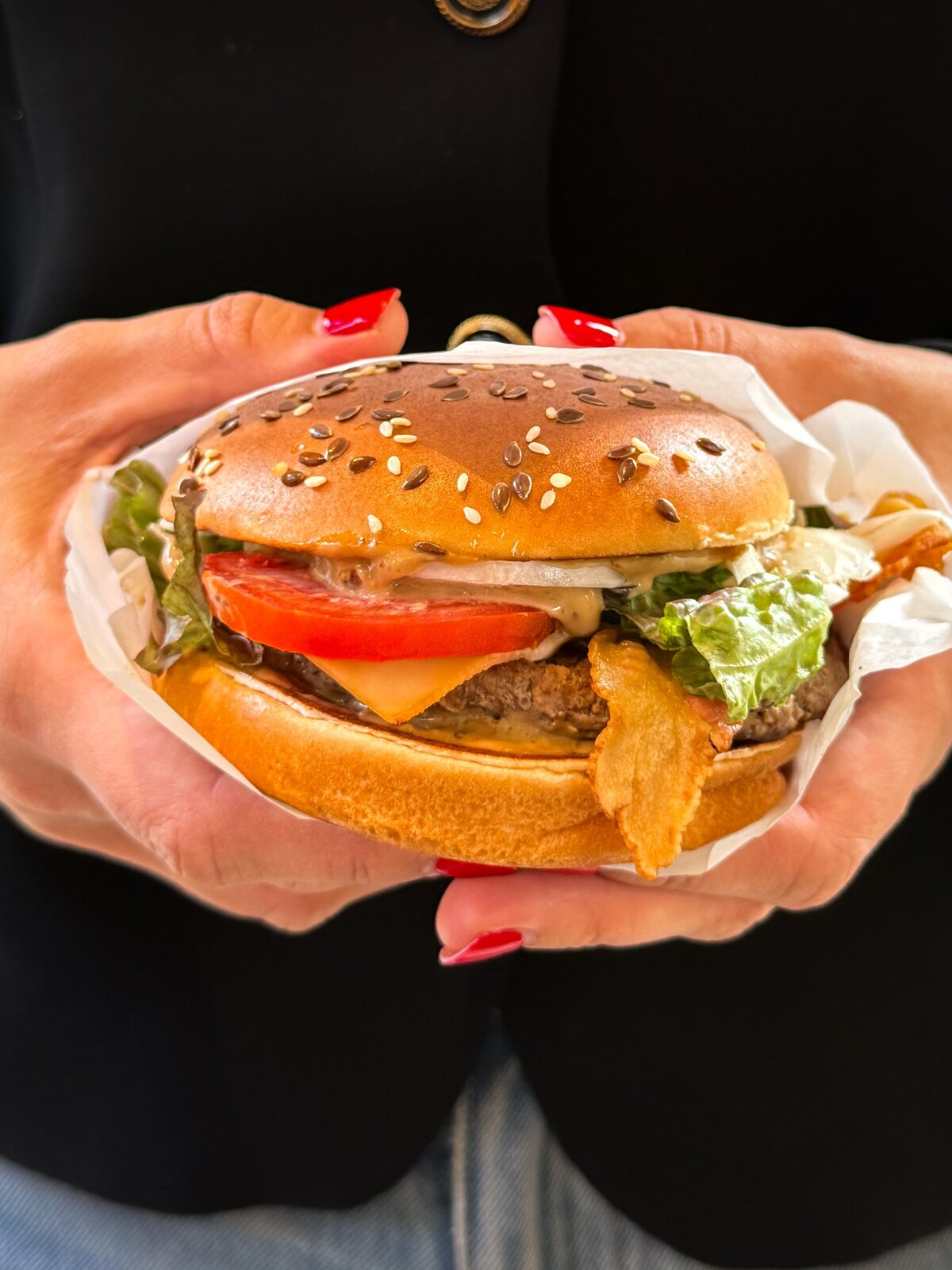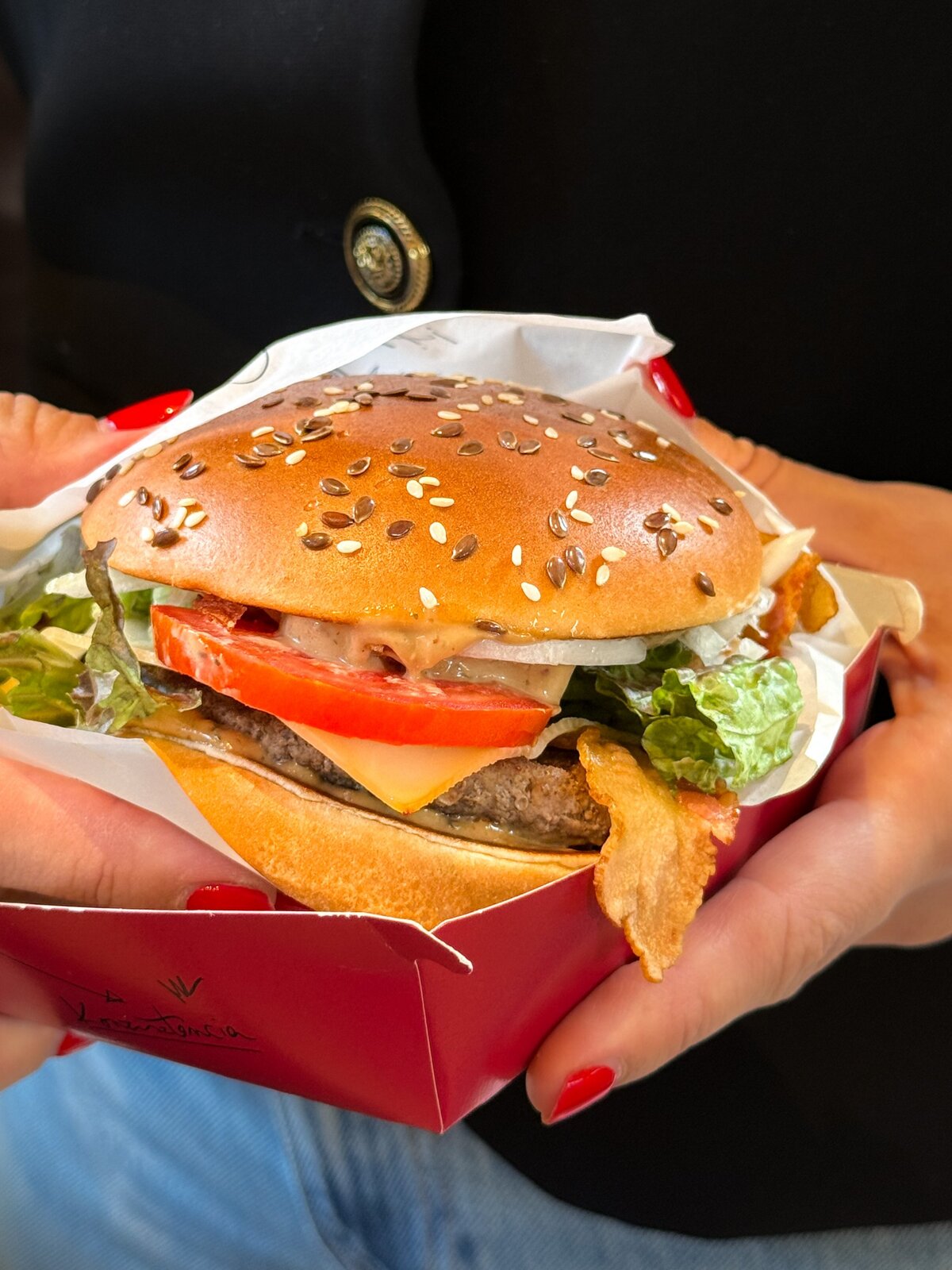 A menü középpontjában egy különleges szendvics áll, amelynek alapja egy extrán vajas, már-már briósszerű, len- és szezámmagos zsemle. A belsejében szaftos marhahúspogácsa, tömbből szeletelt füstölt sajt, paradicsom, lollo rosso saláta, bacon, pirított és friss hagyma kapott helyet. Az ízeket pedig egy igazán különleges hozzávaló, a Magyarországon kevéssé ismert fekete fokhagymából készült szósz teszi teljessé.