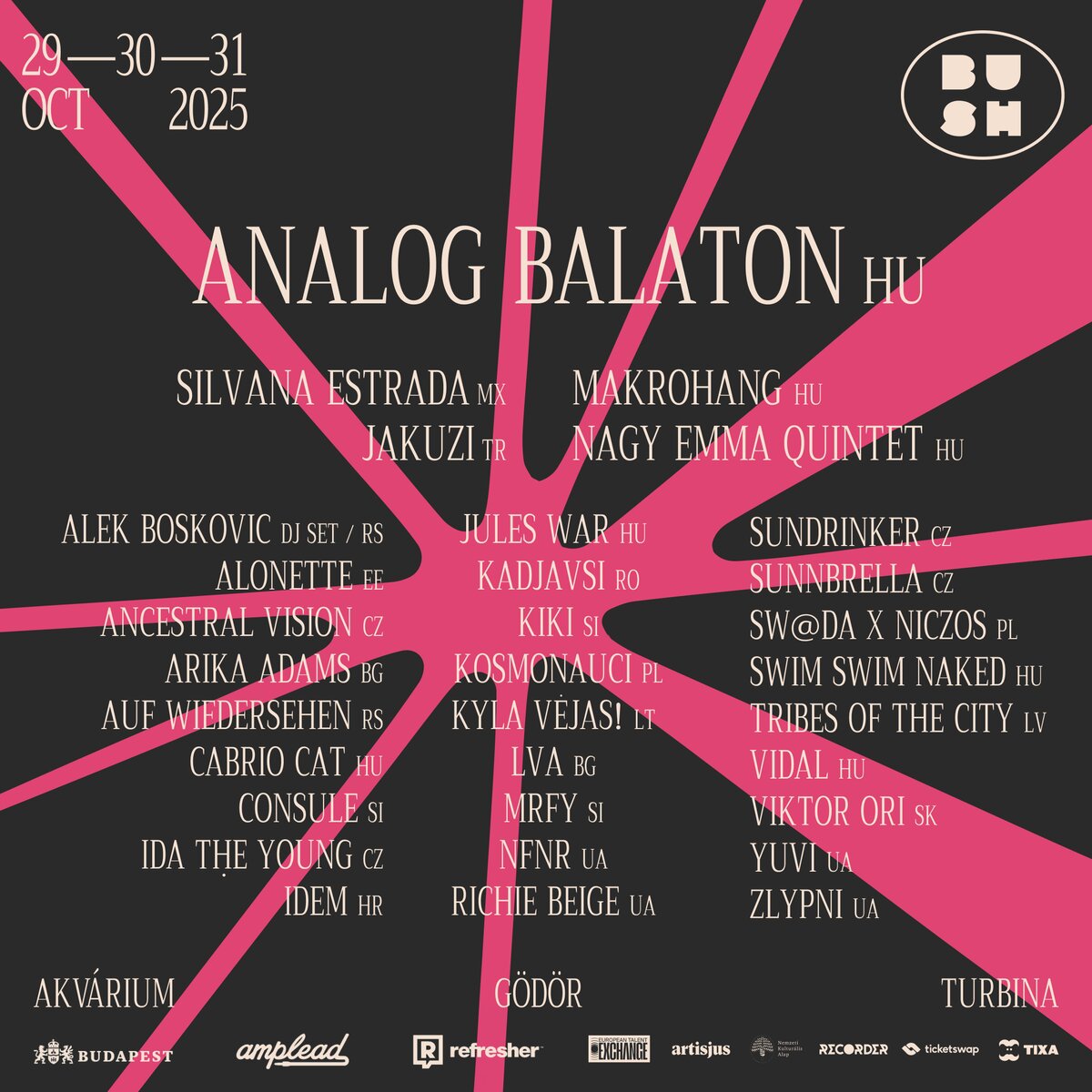 A BuSH legkiemeltebb idei fellépője az Analog Balaton. A hazai downtempo éllovasai kizárólag itt lépnek majd fel szeptember eleje és december közepe közt Budapesten, ráadásul az évzáró duplakoncertjük már telt házas, szóval, ha mindenképp meg akarod hallgatni őket még idén, akkor ez egy ideális alkalom lehet. Október 30-án játszanak majd a Nagyhallban.