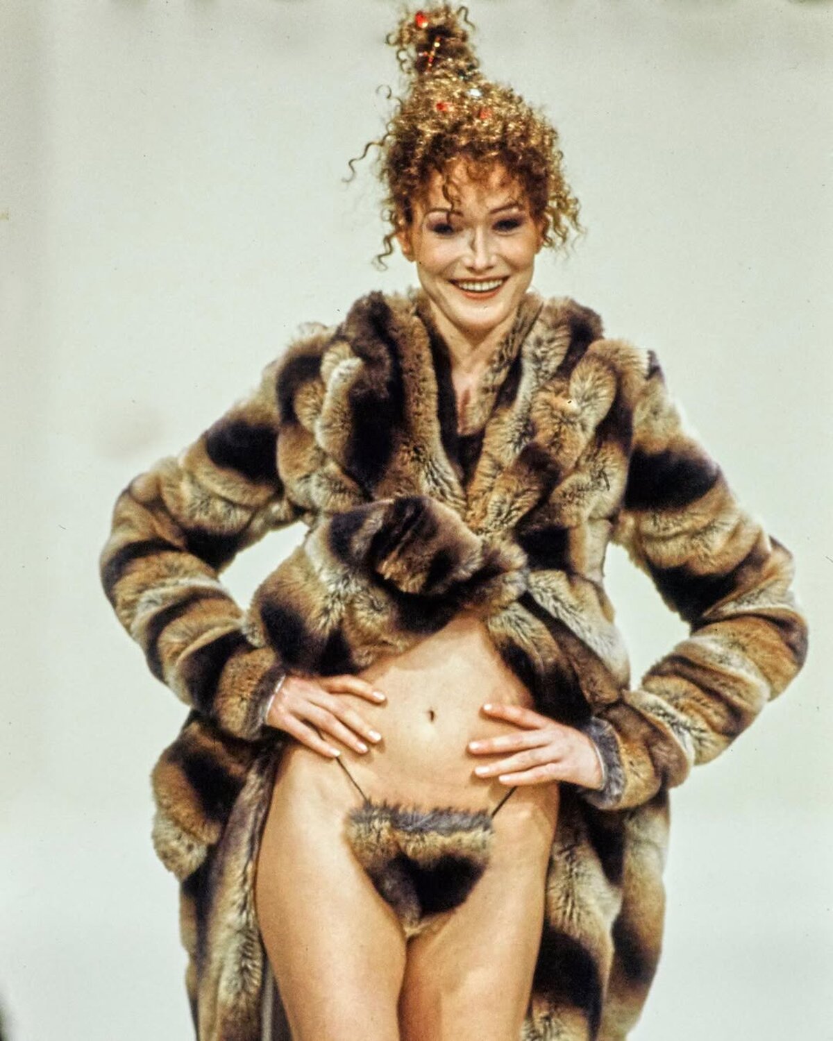 A divattervezők előszeretettel merítenek a (divat)történelemből inspirációt, így a merkin és a fanszőrzet, mint kiegészítő is megjelent már különböző kampányokban és a kifutón egyaránt. Vivienne Westwood 1994-es őszi-téli bemutatóján Carla Bruni egy bundában és egy hozzá illő merkin-bugyiban lejtett végig a kifutón. Westwood célja az On Liberty című kollekcióval a nők és a női test ünneplése volt.