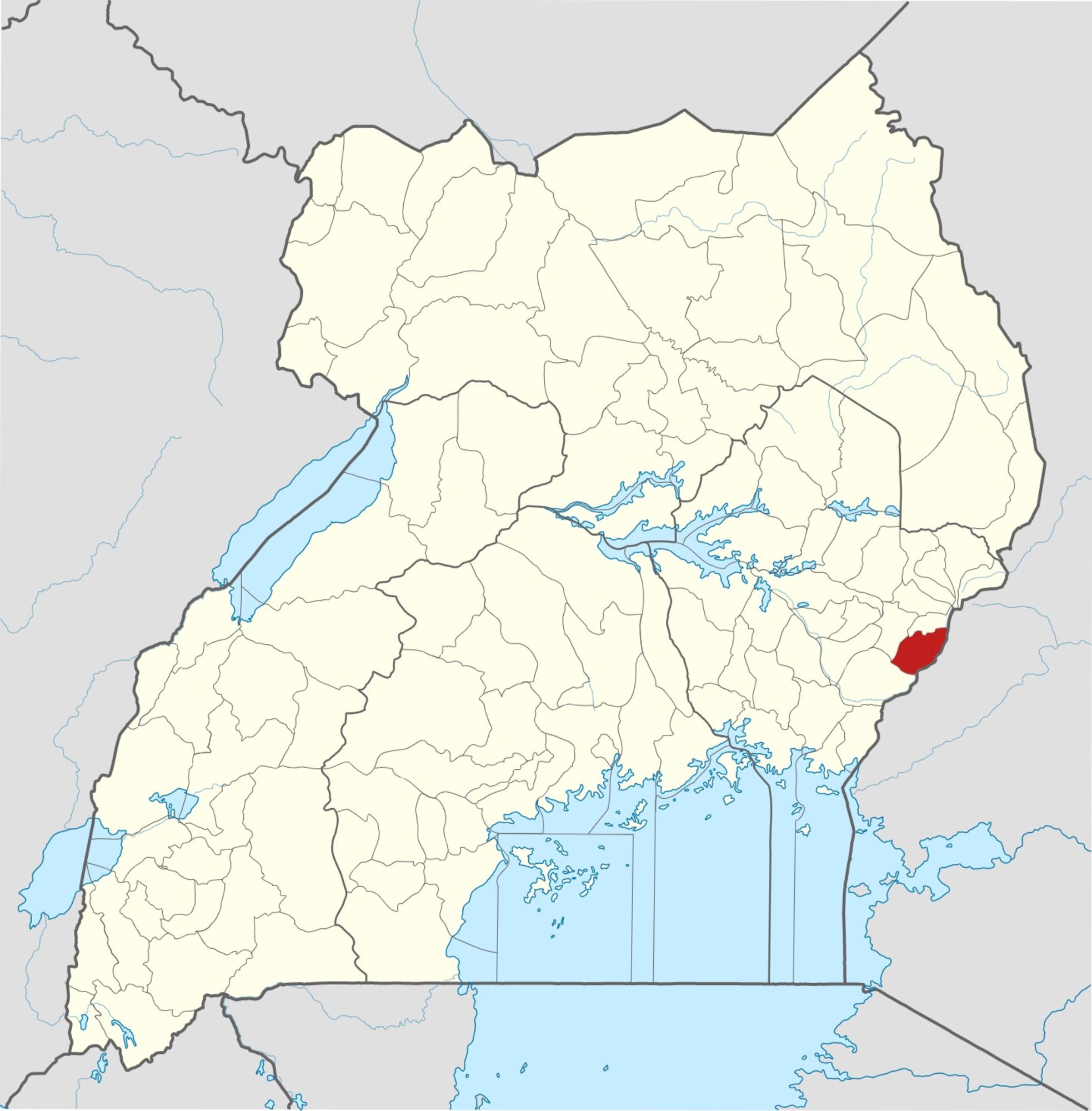 A manafwai régió Uganda térképén.