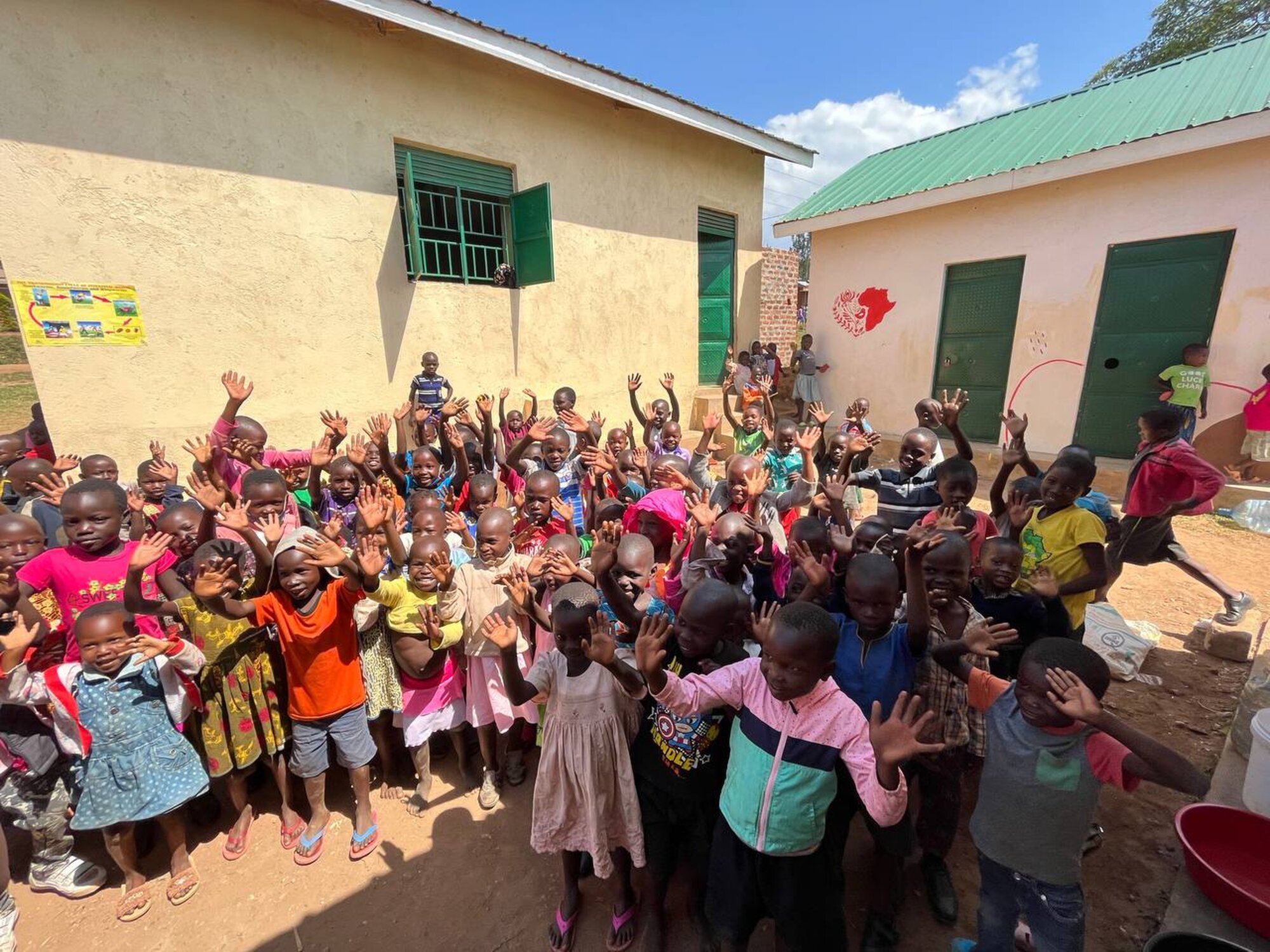 A dzsungel közepén, a manafwai iskola a művészlány keze vonásait viseli magán.