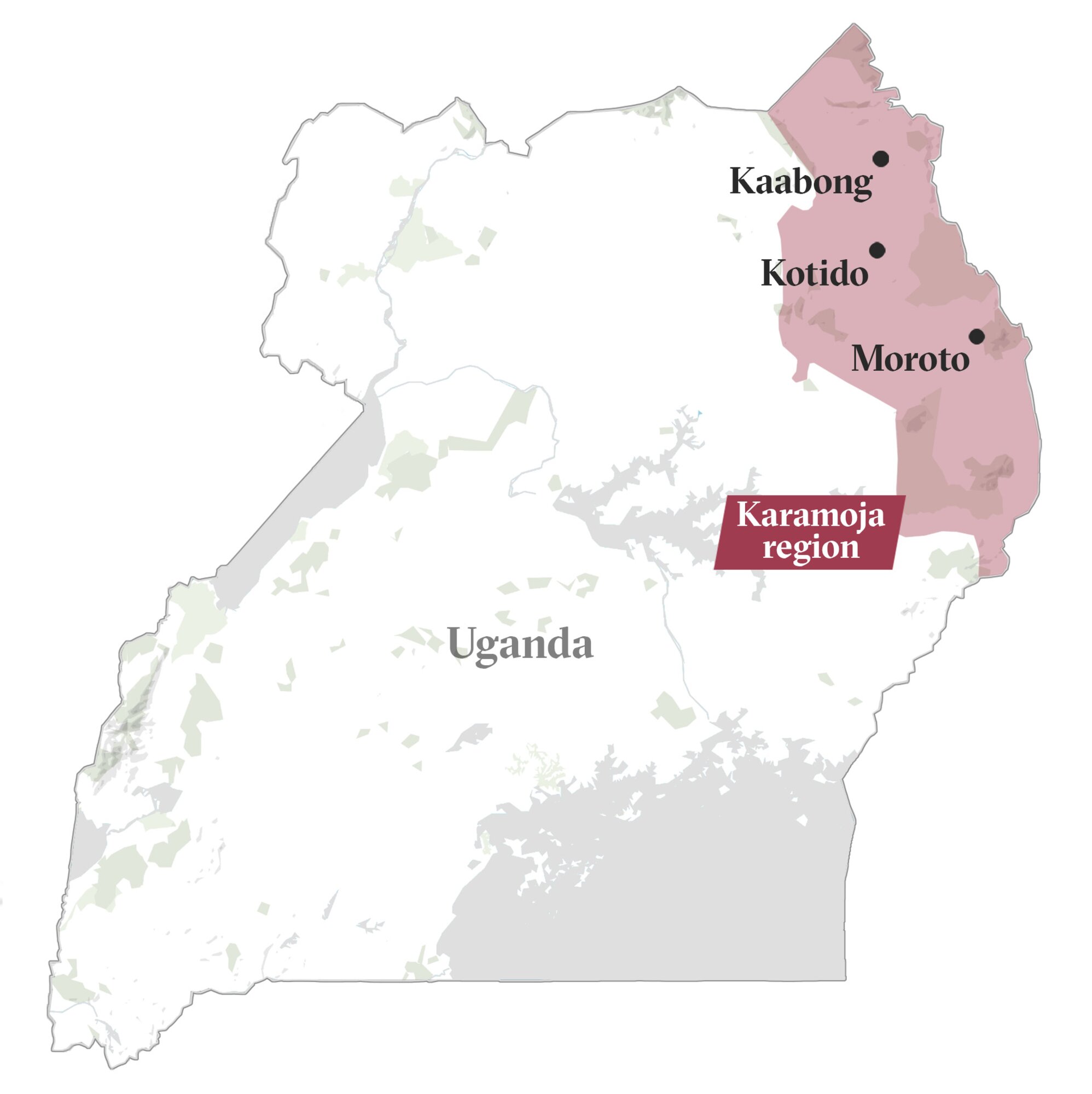 A karamojai régió Uganda térképén.