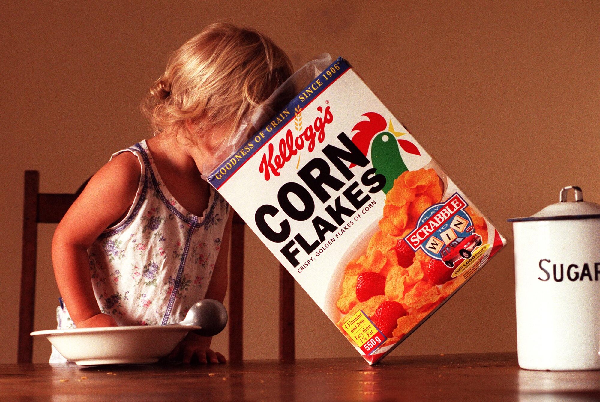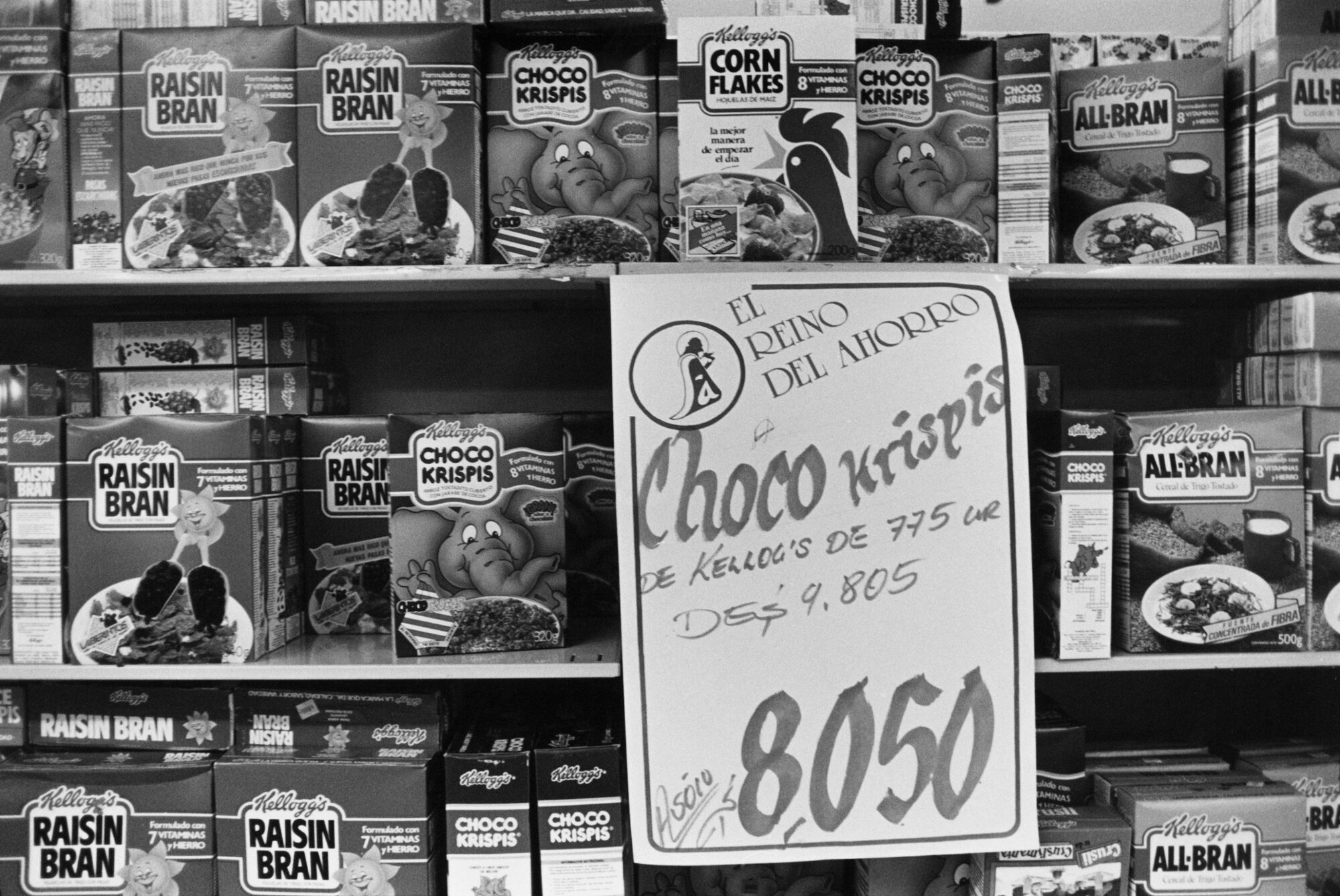 Raisin Bran, Coco Krispis, All-Bran és Corn Flakes 1991-ben, egy mexikói üzletben.