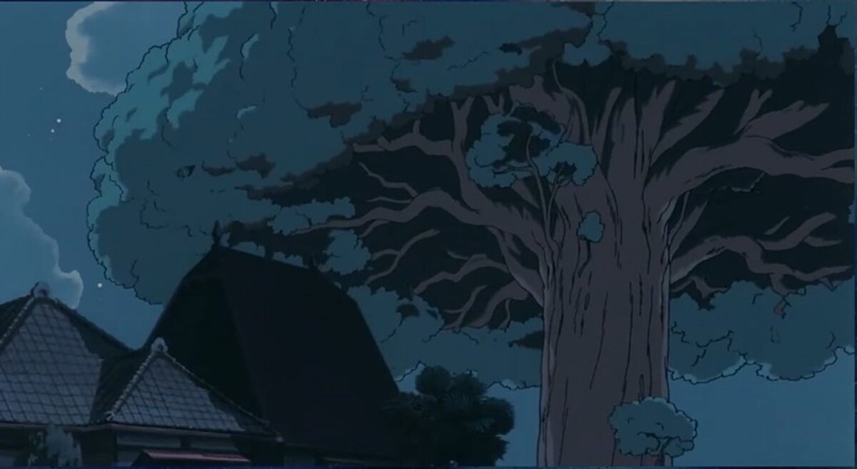 A monumentális növény fontos szerepet tölt be a cselekményben: ennél a fánál találkozik először a gyerekekkel Totoro, így átjárót képez az emberek és a szellemek világa között. Ugyanakkor a szívósság, újjászületés és a természet szimbólumaként is megjelenik a filmben, s ezáltal megint csak teret kap a háborúellenesség, mely Mijazaki munkáiban mindig erőteljesen tükröződik.