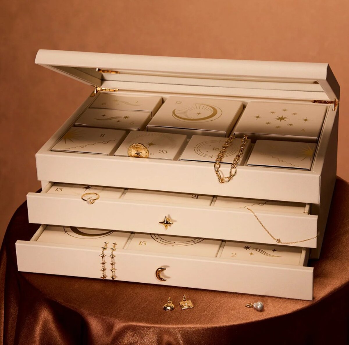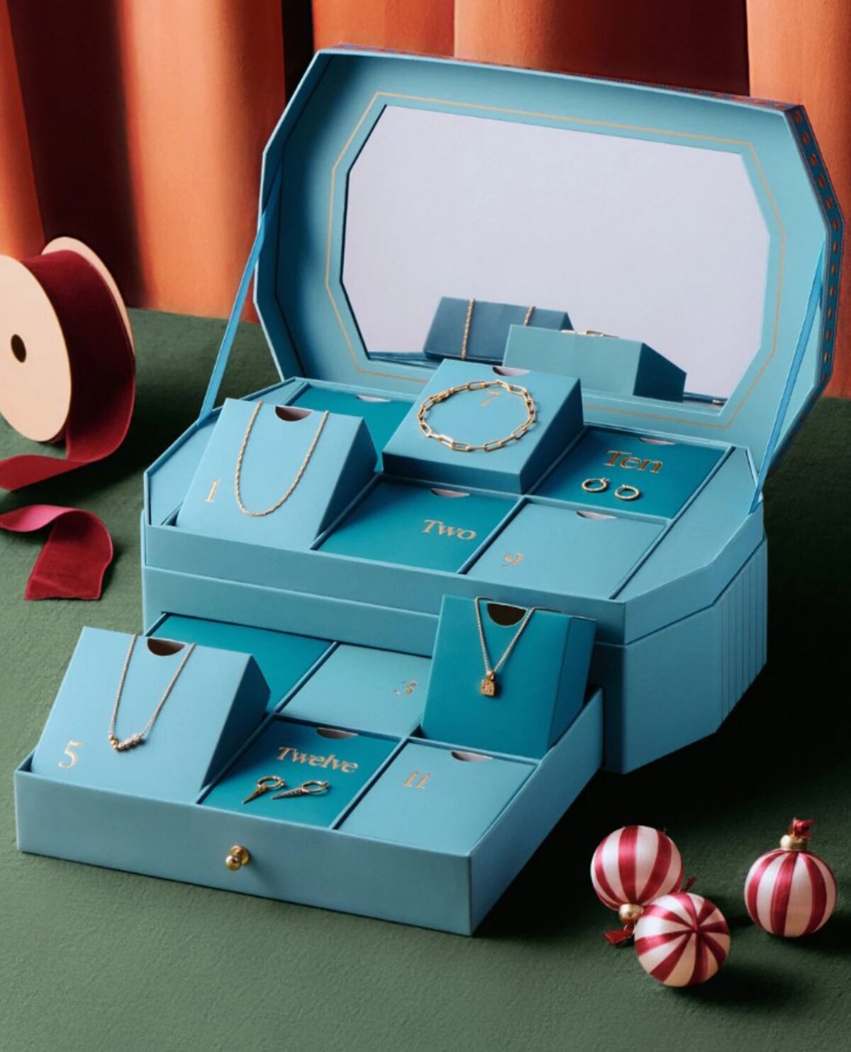 Az ékszeres dobozra hajazó naptár arany és ezüst színekben is elérthető, és még 30 napon belüli részletfizetésre is lehetőségünk van. A hülyének is megéri. Előbbi 18 karátos aranyozott, utóbbi pedig ródium bevonatú újrahasznosított ezüst ékszereket tartalmaz, ezek mellé egy 65 eurós ajándékutalvány is került. Ha nagyon össze kell húznunk a nadrágszíjat, akkor a mindössze 191 483 Ft-ba kerülő 12 napos verziót is választhatjuk.