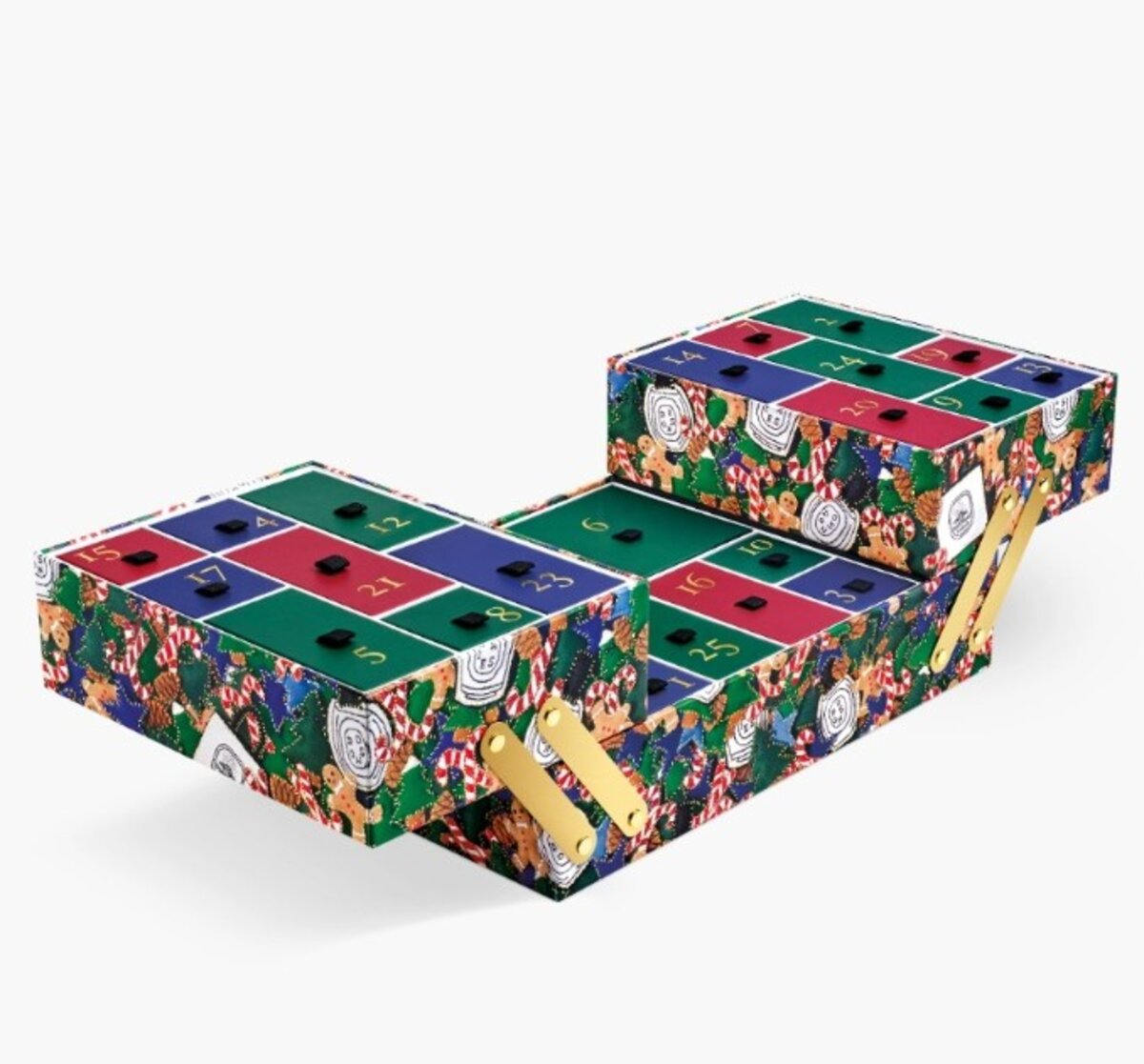 A 2002-ben alapított brit gasztro márka kulináris különlegességeket, konyhai eszközöket, exkluzív italokat és háztartási termékeket rejtett adventi naptárába. Karamellizált fehér csoki, exkluzív kerámiaváza, karácsonyi vörös áfonyás ketchup, karácsonyi pudding ízű espresso martini, piskótasütő szett és vajazókés is rejlik az újrahasznosított pamutzsákokban.