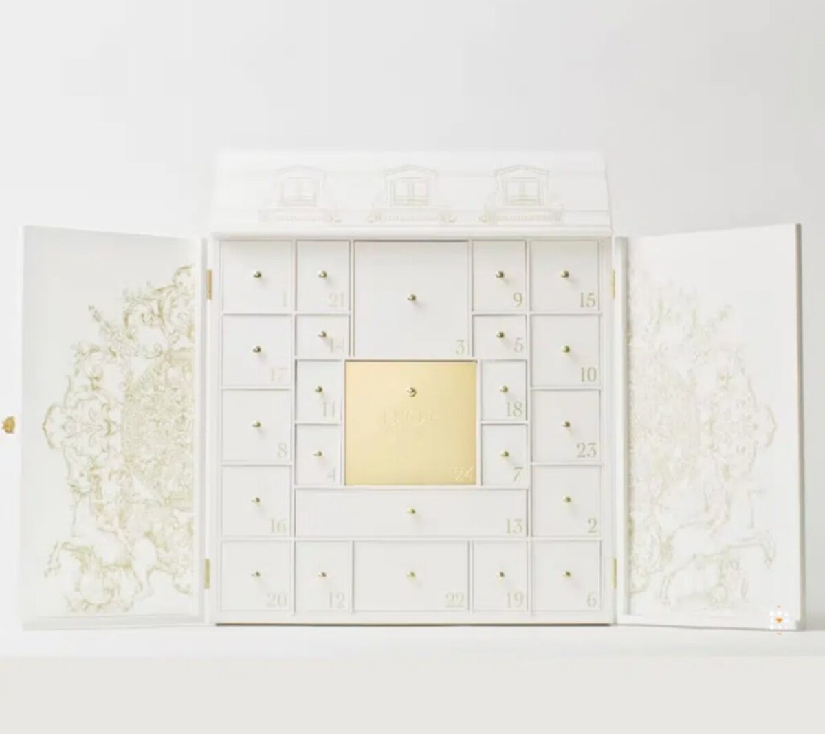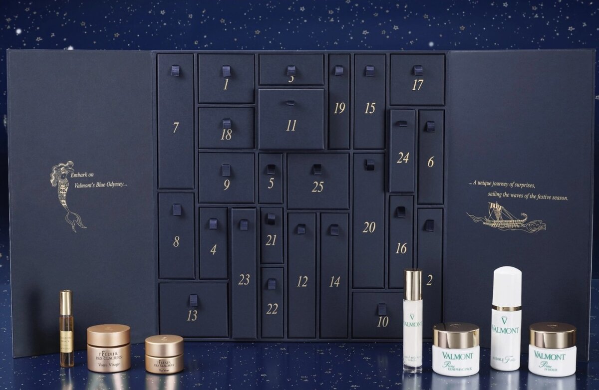 A svájci kozmetikai márka naptárja 25 napos luxus arcápolási élményt (és potenciális eladósodást) kínál. Az arany és kék színben pompázó, nem is kalendárium, sokkal inkább házikó a Valmont exkluzív, prémium termékeit rejti, mint a vitalizáló és puhító toner (150 ml 41,500 Ft), a kétfázisú sminklemosó (60 ml 31,600 Ft), és a magas koncentrációjú luxus szérum (30 ml 269,000 Ft).