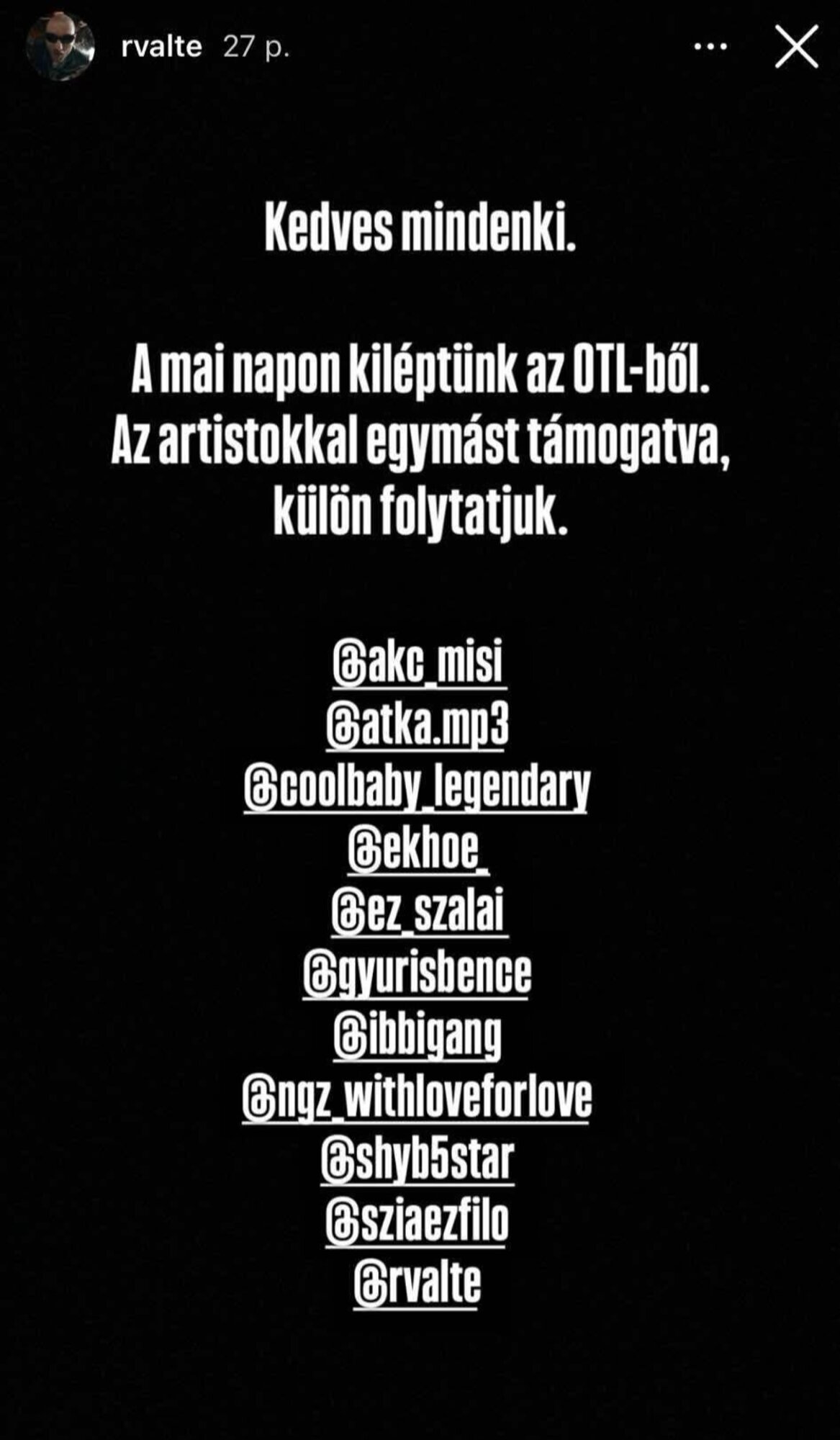 „Kedves Mindenki, a mai napon kiléptünk az OTL-ből. Az artistokkal egymást támogatva, külön folytatjuk” – írta ki Instagram-sztoriba több tag is csütörtökön, a pontos okokról egyelőre azonban keveset tudni.