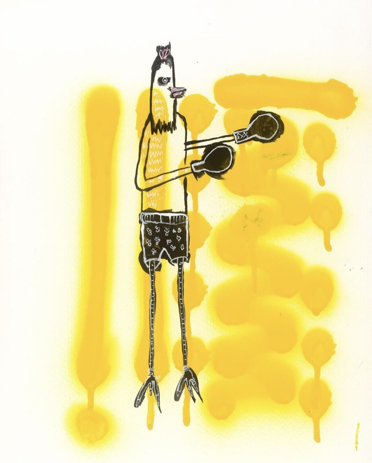 Zeus Milenko Steven Salas a harcra idomított állatokat beemelő kiállításával dél-amerikai gyökereihez nyúlik vissza. A Budapesten élő, Venezuelában született festő és előadóművész nagyapja, Teodosio Contreras híres harci kakasidomár volt, Zeus pedig sok időt töltött a családi farmon, ahol segített a kakasokat felkészíteni a viadalokra.