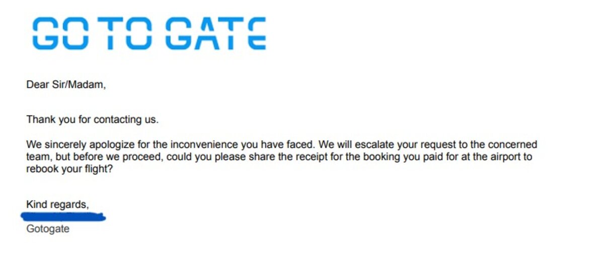 A Gotogate kijelentette, hogy ha a szolgáltatás nem kerül teljesítésre, akkor a légitársaságok felelőssége az ügyfél számára új foglalást biztosítani vagy kártérítést fizetni. Néha a közvetítők is megtehetik ezt a légitársaság nevében, néha pedig a légitársaságok intézhetik, közvetlenül az ügyféllel. Azt már nem árulták el, hogy mitől függ, hogy ki is cselekedhet a utas érdekében.