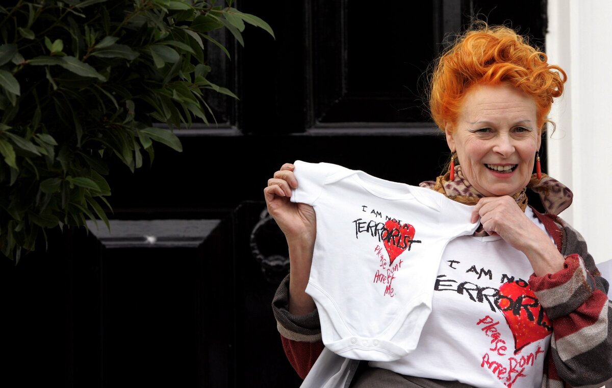 De a híres tervező Vivienne Westwood is hódolt az eszköznek, igaz ő nem meggyőzni, hanem provokálni és kizökkenteni akart vele, mint sok egyéb kreációjával. A Seditionaries-korszakában készítette el a „DESTROY” feliratú pólót, ami tökéletesen illett a punkos vonalába, majd 2003-ban tervezte meg az „I AM NOT A TERRORIST, please don’t arrest me” – pólóját, ami szintén erős odamondás volt a korszellemnek. Ezek is remekül mutatják, hogy Westwood mindig okosan illesztette össze a politikai meggyőződését a divattal, és fordítva.